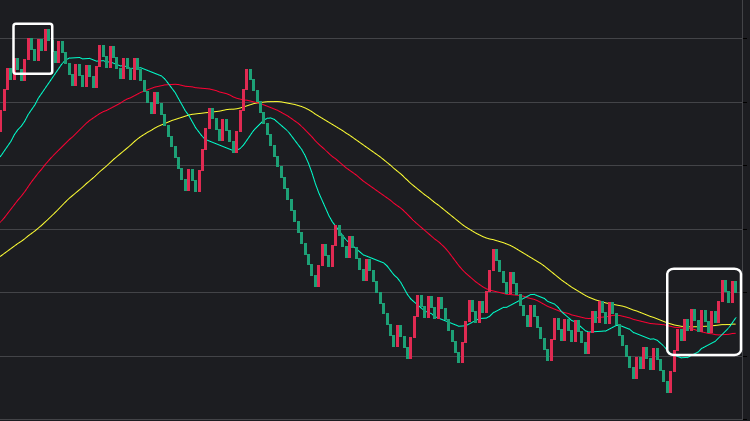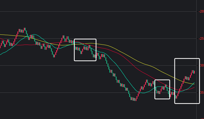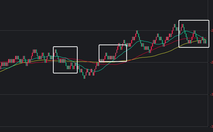 可以看到一些规律,在白框中,如果一致,那么接下来这些跨度也会出。