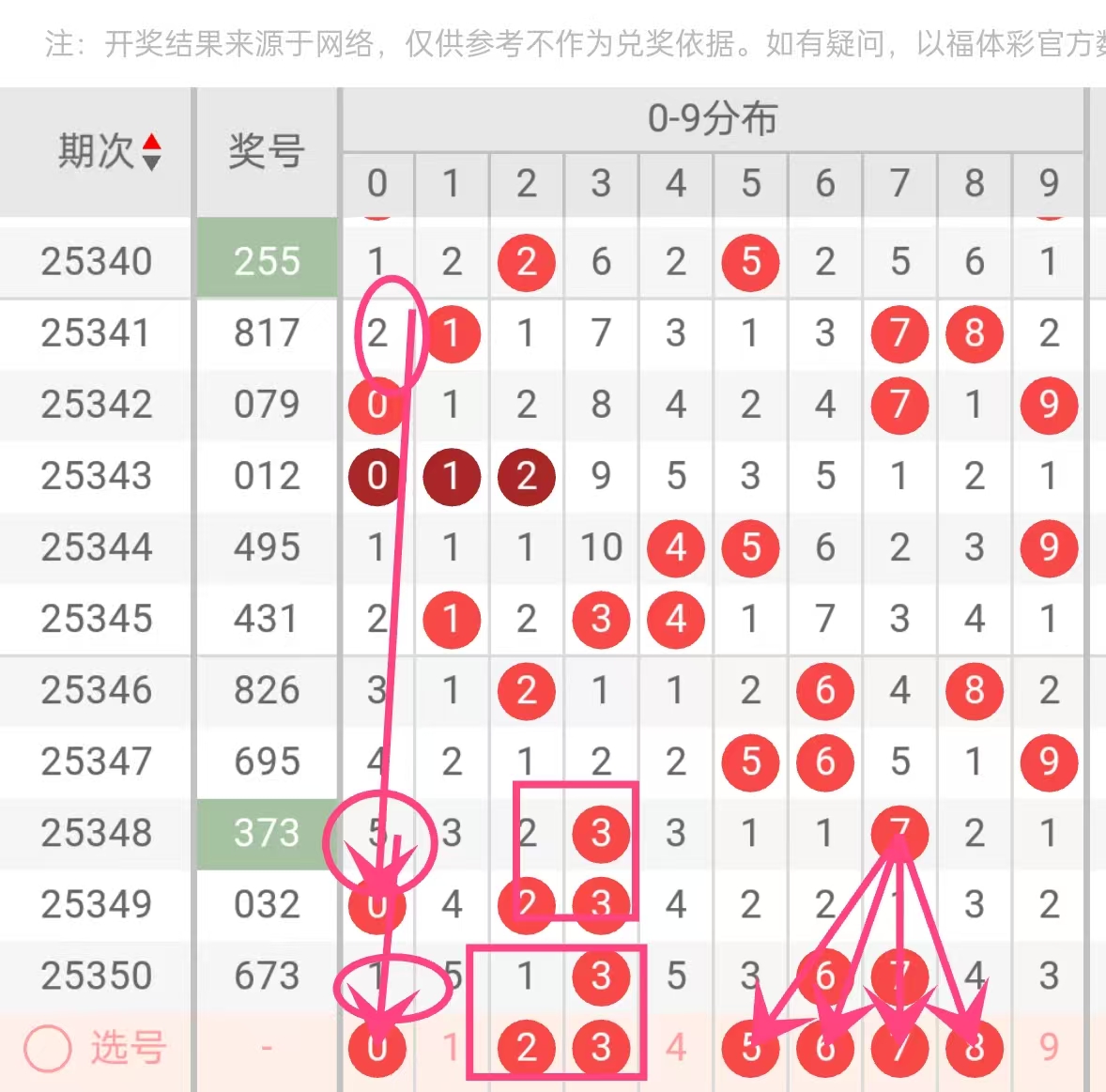 近5期小号(0-4)出现频率略低,但“2”在2025346期十位、2025349期个位各出现一次,呈现“偶现回补”特征。从奇偶形态看,近期奇数略占优,偶数需适度平衡,2作为偶数小号,常与“3”“6”搭配(如2-3、2-6),且历史数据中2在连续两期未出现后常快速回补。结合和值走势(近期和值多在10-20间),2可作为中和值组合的配号。