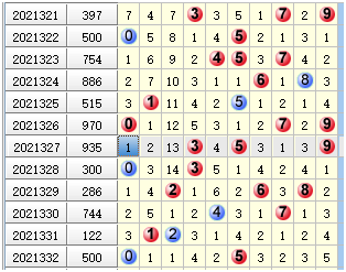 比如321期开奖号码397,当期期号就是1,百位号码就是3,两两相加有什么效果呢?
