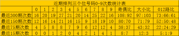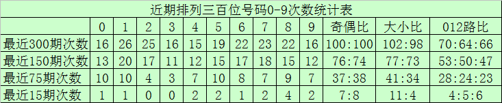 百位分析:最近300期奖号由冷到热表现为:021,326,427,928,5630,232,833,735,138次,奖号奇偶比为157:143,大小比为156144012路比为105:100:95