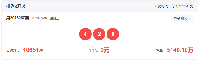 体彩P3上期开奖回顾: