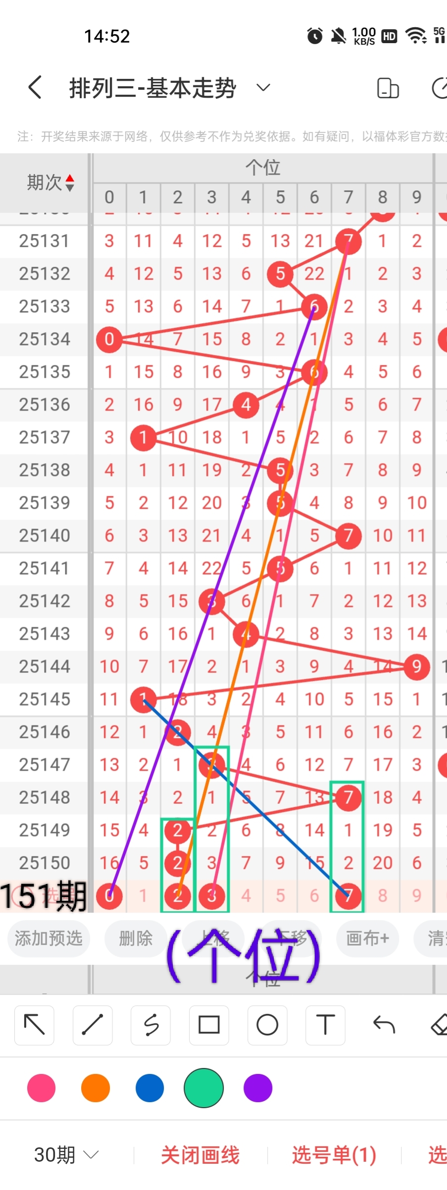 通过以上对上期的简单回顾,下面进入体彩排列三第2025151期(下面简称本期)的选号分析: