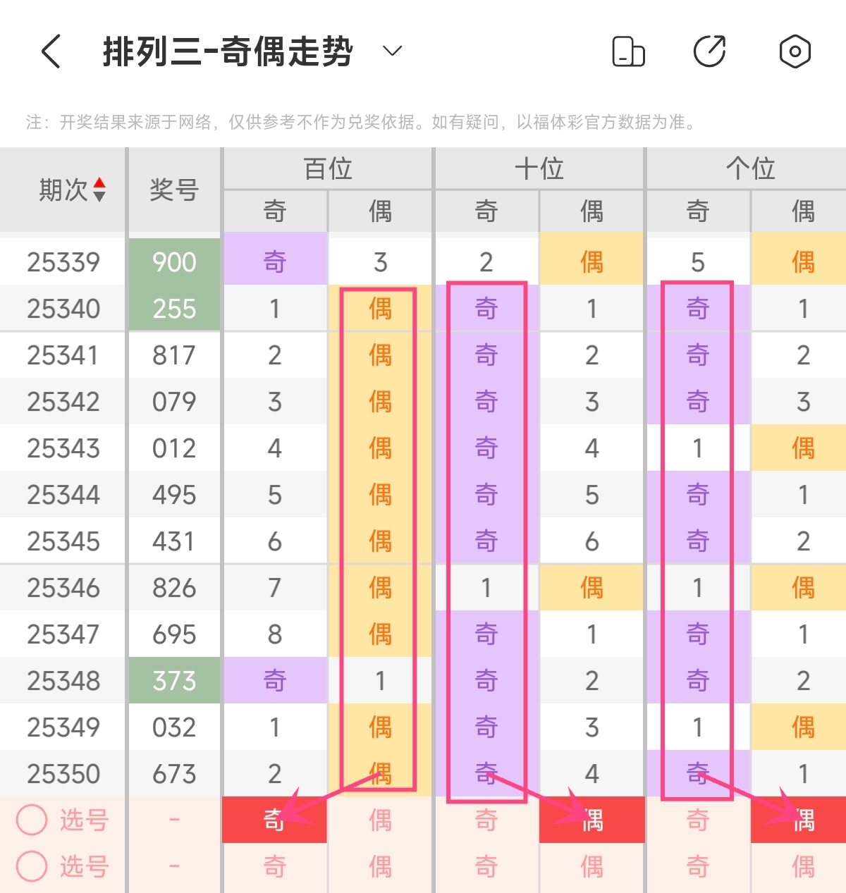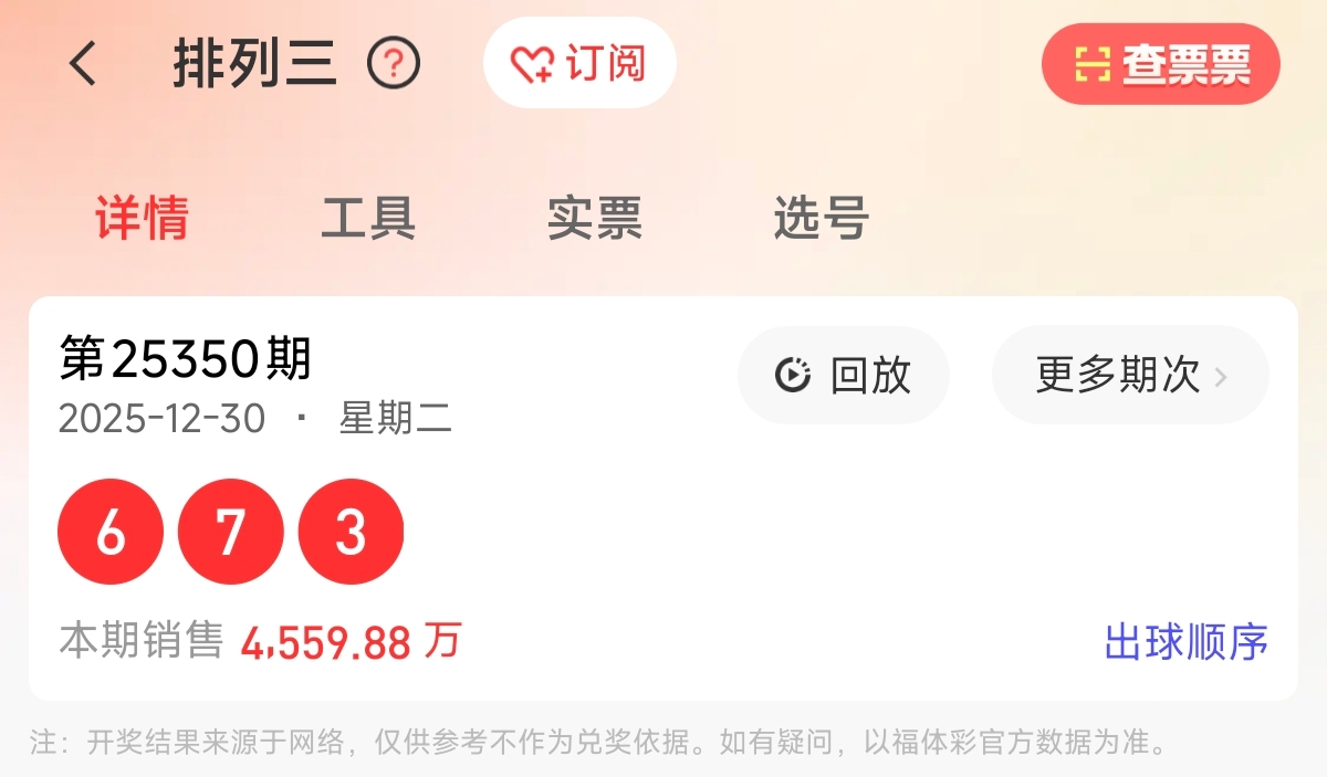 首先让我们回顾一下上期排列三第2025350期开奖号码为673,为组六形态,大小比为2:1,奇偶比为2:1,跨度为43,和值为16。