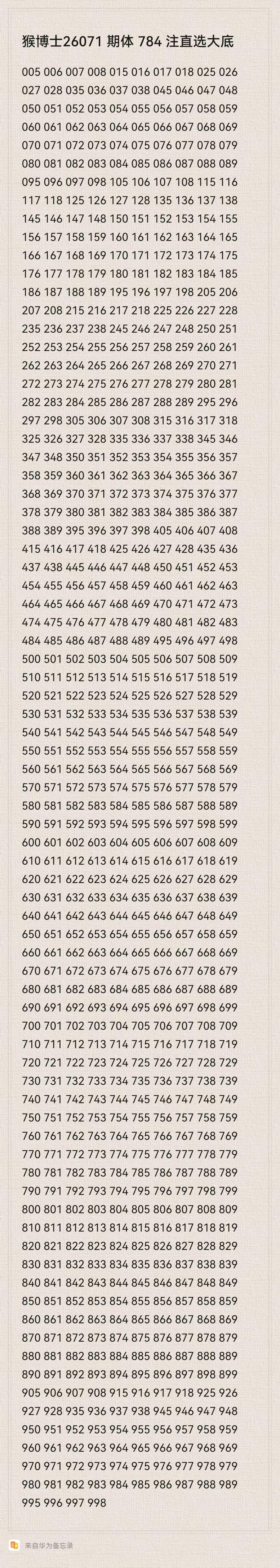 猴博士26071期排列三784注直选大底:(可以当母底用,然后进行缩水)