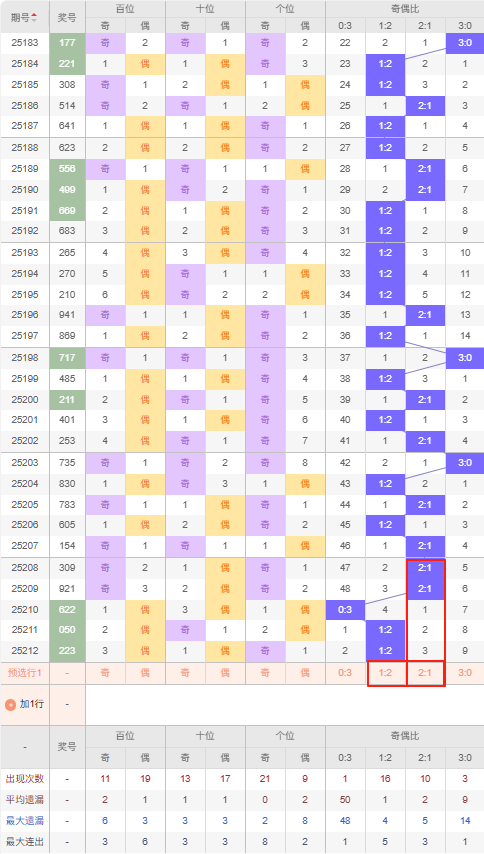 2025213期排列三条件分析:(和值、大小比、奇偶比、质合比):