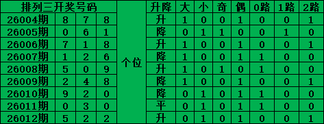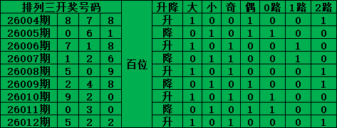 上期中头奖 排列三第2026013期号码分析推荐