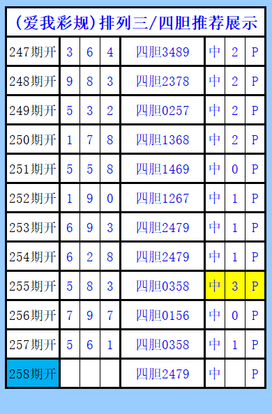 排列三第258期图文(爱我彩规),四胆推荐展示