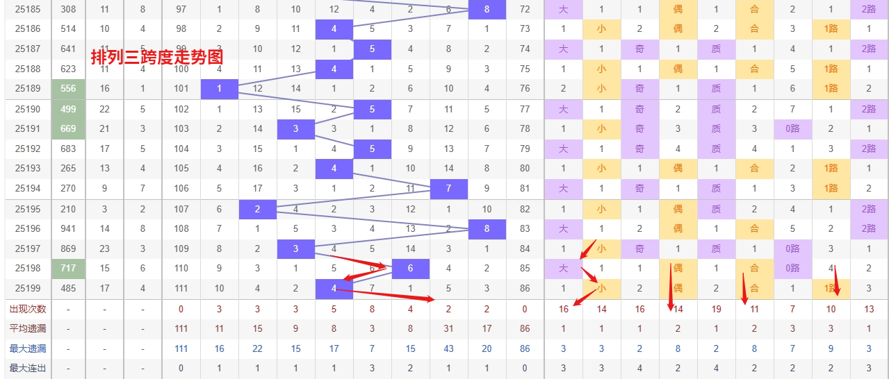 排列三第2025199期开奖回顾:开奖号码:485 形态:组六