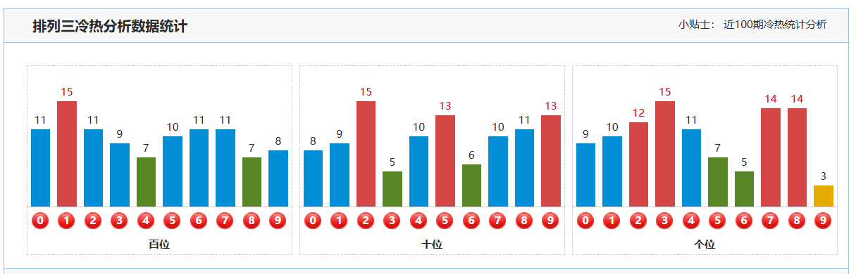 4. 跨度分析:上期跨度为2,这是一个小的跨度值。从跨度的振幅来看,比上期跨度减小5个点,本期在跨度分析上,我们预期跨度会回补增大,因此,预计本期跨度可能落4至9之间。