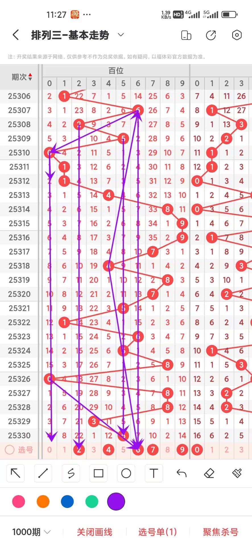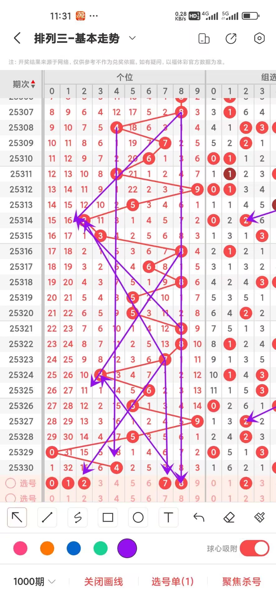 2025331期,上期十位开出奇数9,我们通过走势图来看1000期012路中下号的数据,0路号码的最大总数是377次,0369分别在1000期内下号分别是97,103,77,100,这几个数6目前下号最少,我们再来看1路号码下号最大总数是315,147号码分别是,102,107,106,这三者之间差别不大,再回过头来看2路号最大总数是308次,258号码分别是108,89,111次,这三个数之间5下号最少,在来看百位平均遗漏,目前0路遗漏的总数是39次,1路遗漏的总数是25,2路遗漏总数26,十位目前大号目前走势持续,我们可以关注下,通过上面的走势分析我们可以看出目前十位奇数走势比较好,05号码走势就有点冷淡,今天十位我们重点关注01567,具体看下面走势图