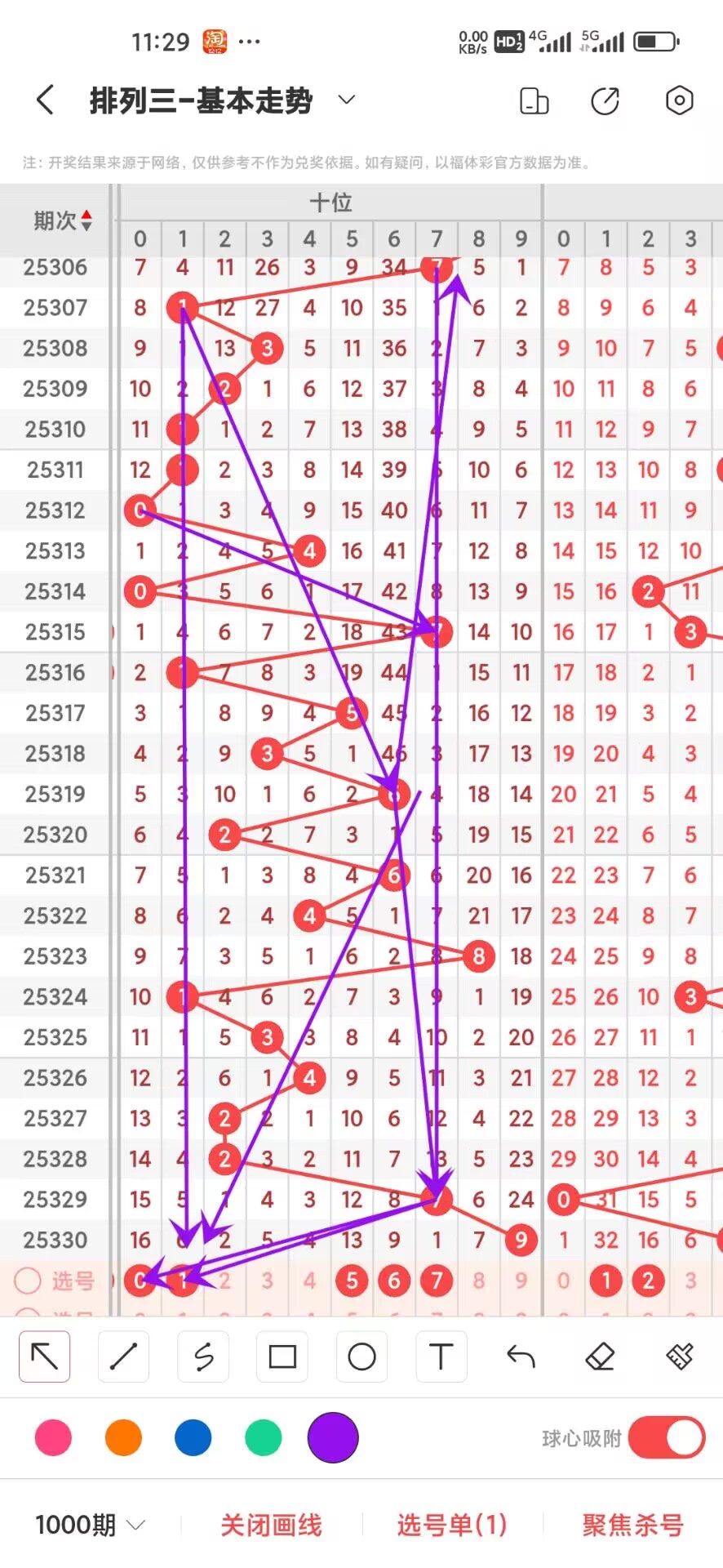 2025331期,上期个位开出偶数4,我们通过走势图来看1000期012路中下号的数据,0路号码的最大总数是386次,0369分别在1000期内下号分别是98,109,92,87,这几个数9目前下号最少,我们再来看1路号码下号最大总数是317,147号码分别是,107,106,104,这三者之间差别不大,再回过头来看2路号最大总数是297次,258号码分别是84,103,110次,这三个数之间2下号最少,在来看个位平均遗漏,目前0路遗漏的总数是37次,1路遗漏的总数是26,2路遗漏总数28,个位目前小号目前走势比较好,我们可以关注下,通过上面的走势分析我们可以看出目前个位偶数开始回补,12号码走势就有点冷淡作为防守,今天个位我们重点关注01278,具体看下面走势图