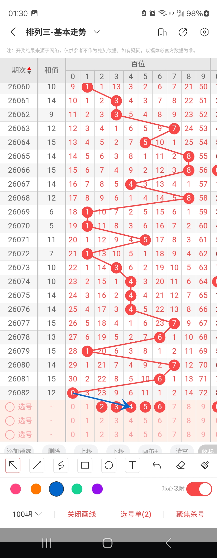 百位走势标注如下图;
