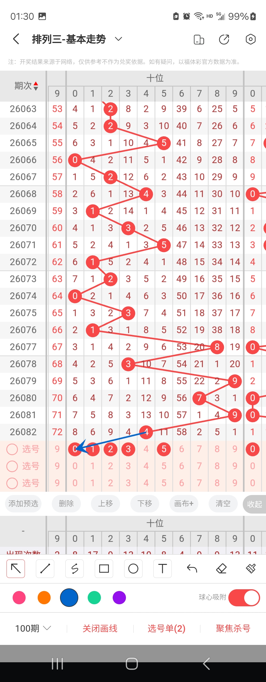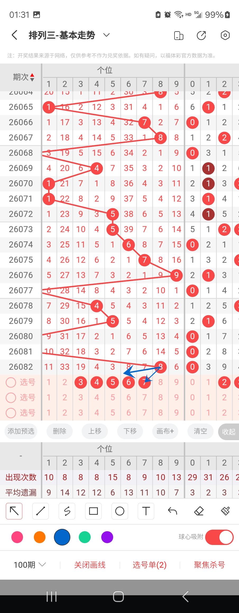 个位走势标注如下图;