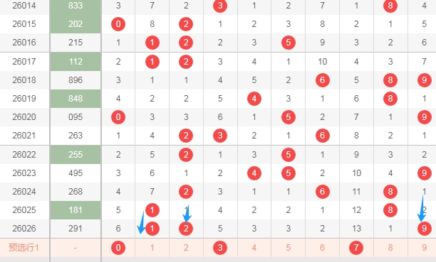 大家好,本人蔡楚门,一个玩彩十几年的老彩民,现在来本平台分享一下本人的对彩票的分析思路和看法,希望本人的文章能够给你们带来灵感和好的运气,首先感谢一起彩提供一个好的平台,下面走势图都是用一起彩平台的走势图,接下来分析一下体彩排列三第2026027期号码思路。下面文章中名词解读,合数为0 4 6 8 9,质数1 2 3 5 7,奇数1 3 5 7 9,偶数0 2 4 6 8,1路球数字1 4 7,2路球数字2 5 8,,0路球数字0 3 6 9。下面分析是从左到右定位分析。