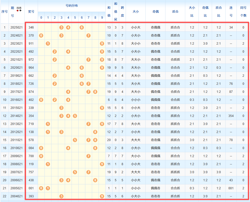 1、统计往年同期开奖号码