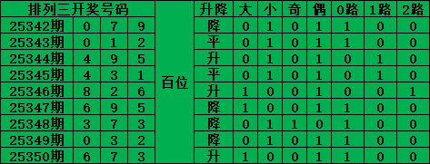 上期中头奖 排列三第2025351期号码分析推荐