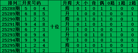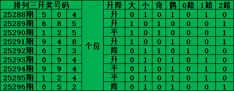 综上所述,排列三第2025296期号码推荐: