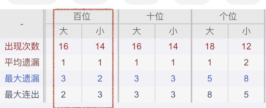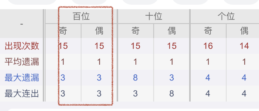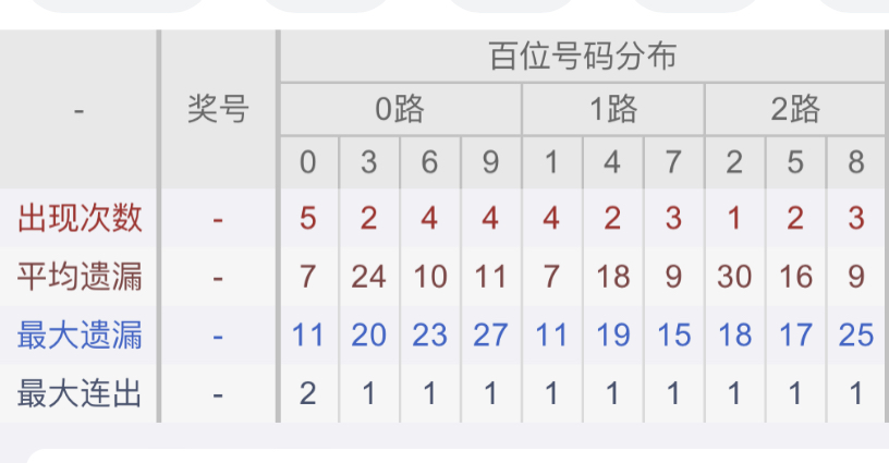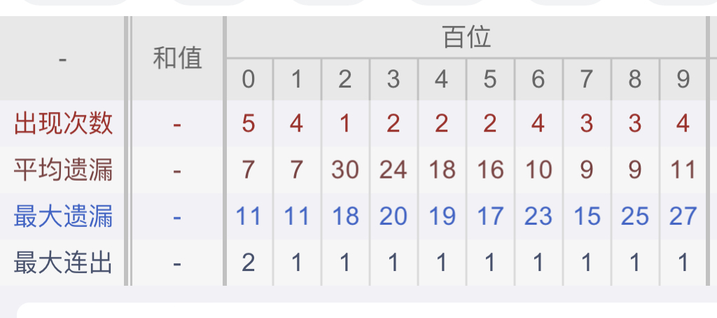 从近30期数据我们可以看出百位0是热码,这个冷热码数据我们结合之后的分析再利用它