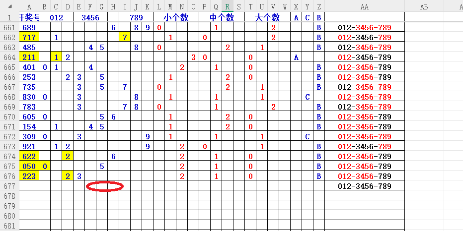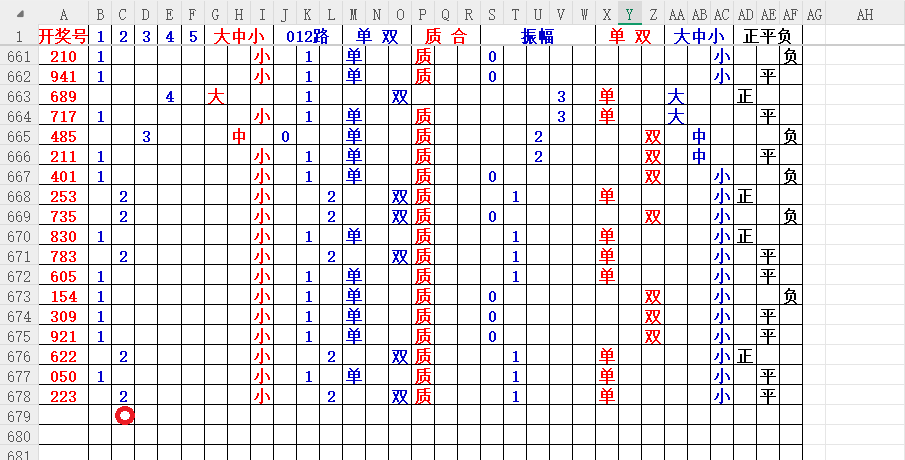 如上图8,012路分析1路出的概率大,本期可以从2路号入手,也就是23数。