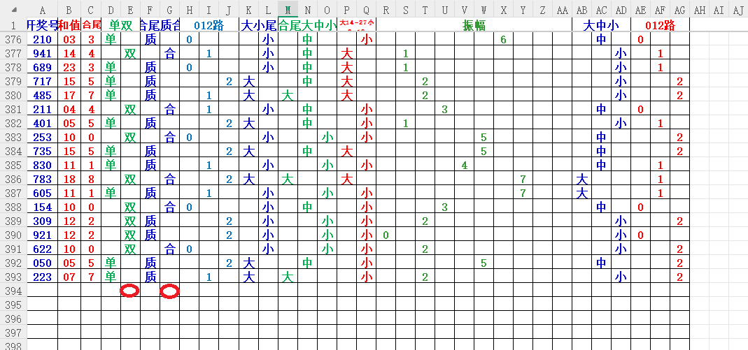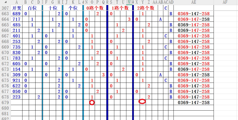 如上图56,012路分析0路出号的概率还是很大,本期可以从0路号入手做胆0369中选;看好369胆码。
