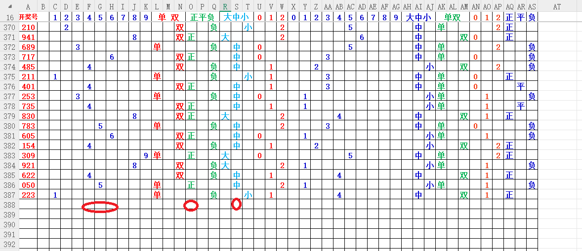 如上图7,012路分析-1路出号的概率还是很大,本期可以从2路号入手5代表89。