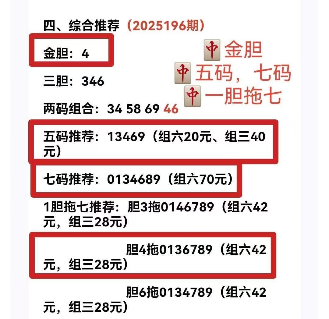 2025195期 命中金胆,命中五码推荐,七码推荐,一胆拖七