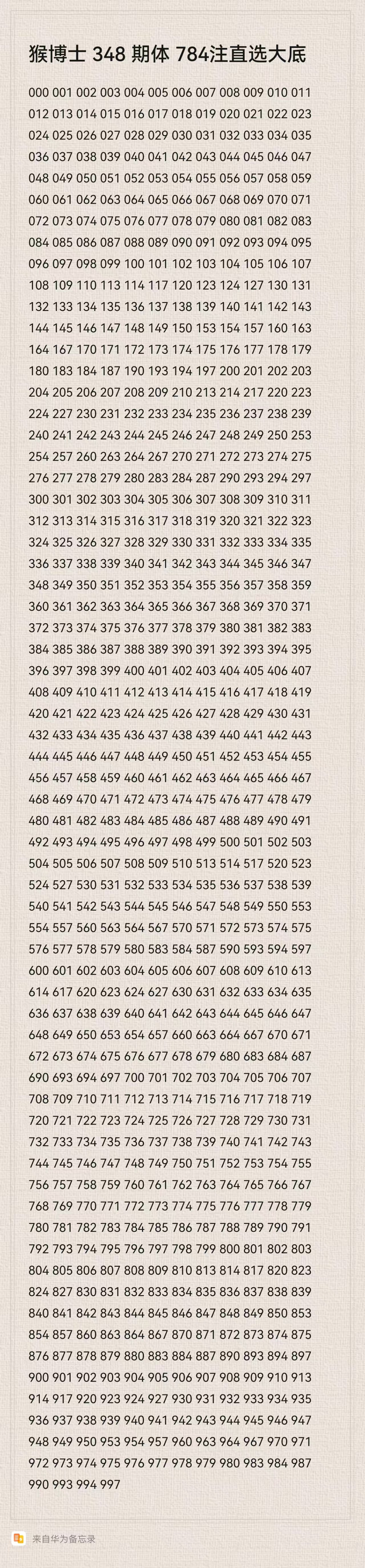 猴博士348期排列三784注直选大底:(可以当母底用,然后进行缩水)