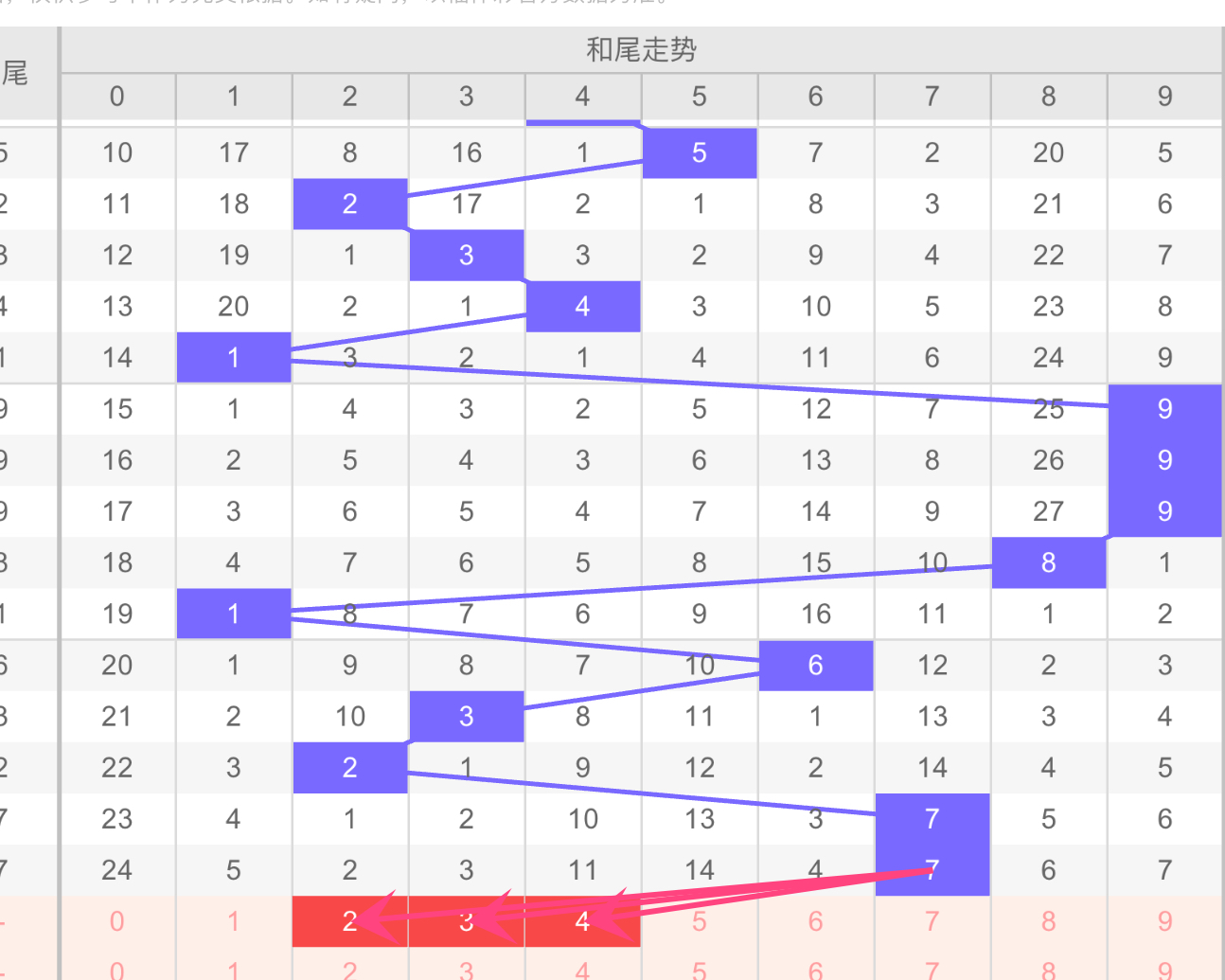1,和尾分析:7尾连续两期,很意外,走势图看出本期小尾数可能性很大,着重看01234尾。