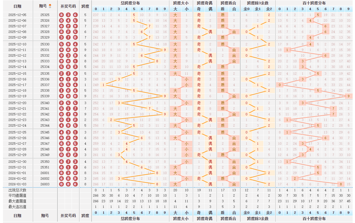 排列三跨度分析数据统计图表