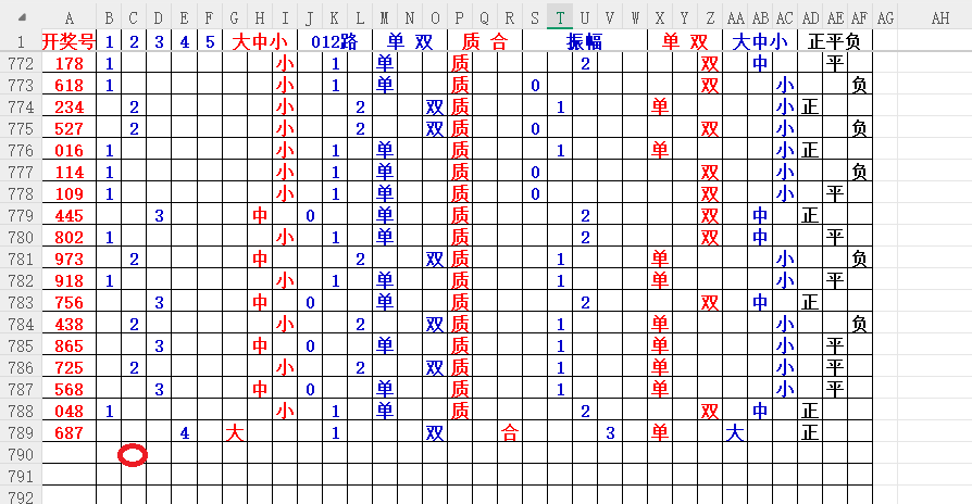 如上图7,012路分析-1路出号的概率还是很大,本期可以从1路号入手4代表78