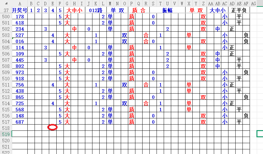 如上图2,大中小分析来看,中小数尾3456尾,可以考虑定3456尾。