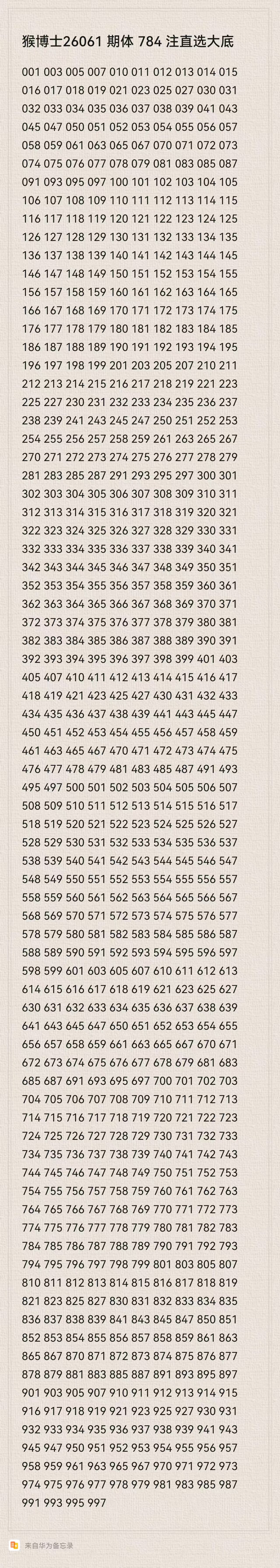 猴博士26061期排列三784注直选大底:(可以当母底用,然后进行缩水)