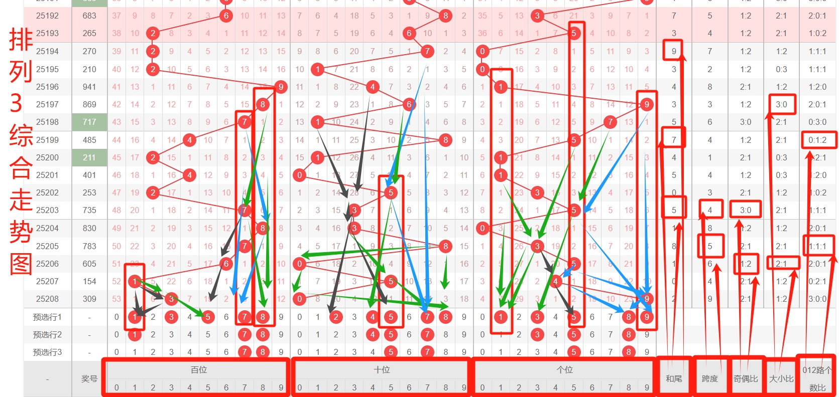 第2025202期数据分析命中形态、和值,六码、七码组选,5*5*5定位复式直选,命中盲盒金码。
