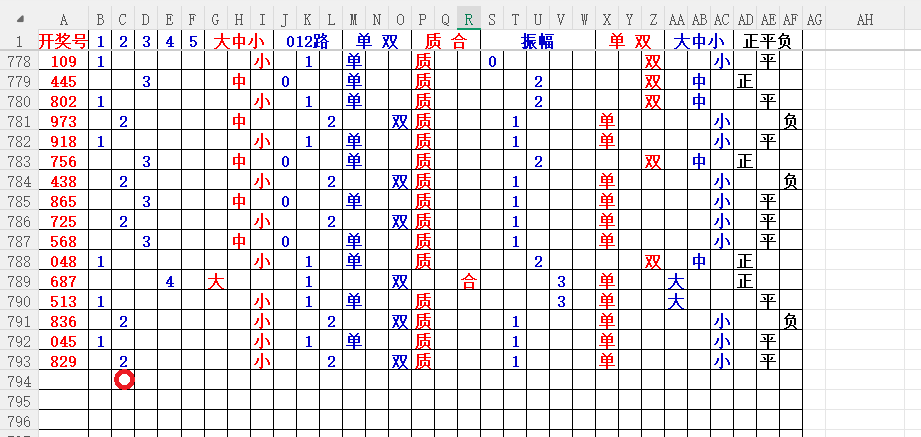 如上图7,012路分析-1路出号的概率还是很大,本期可以从1路号入手4代表78