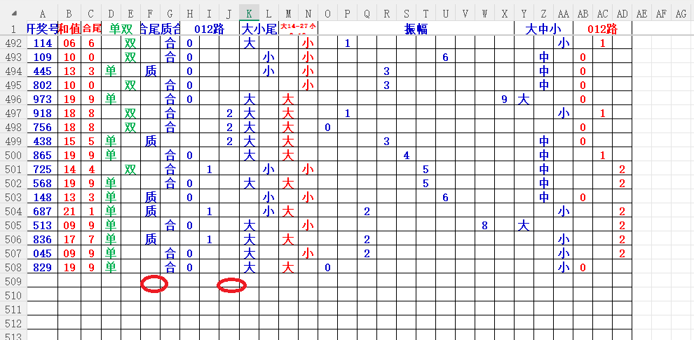 如上图2,大中小分析来看,中小数尾3456尾,可以考虑定3456尾。