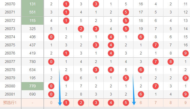 上图是体彩排列三开奖号码走势分布图,我标注出来的数字12345这个区域已经连续两期没出现号码,那么本期这个区域的数字可以关注出一个或者两个,防出3个吧。