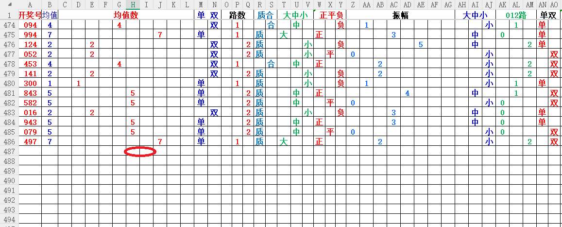 如上图1,大中小分析,均值小中大数比较好,也就是 3456 均值最好,重点:45。