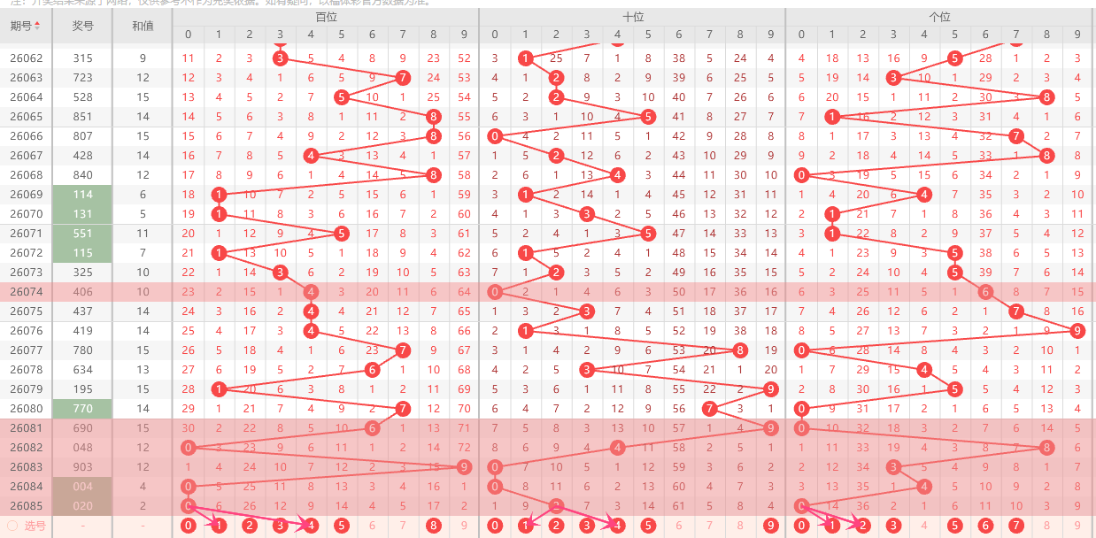 个位上期开出号码0,小数、偶数、个位近5期开出号码为:0-8-3-4-0,从近5期看81期遗漏为0,82期遗漏为14,83期遗漏为5,84期遗漏为19,85期遗漏为3,本期号码关注遗漏号码1、2,大小走势为:小大小小小。小数走热开出,本期关注小数开出。奇偶走势为:偶偶奇偶偶,偶数形态走热,注意奇数开出。本期个位推荐::0-1-2-3-5-6-7