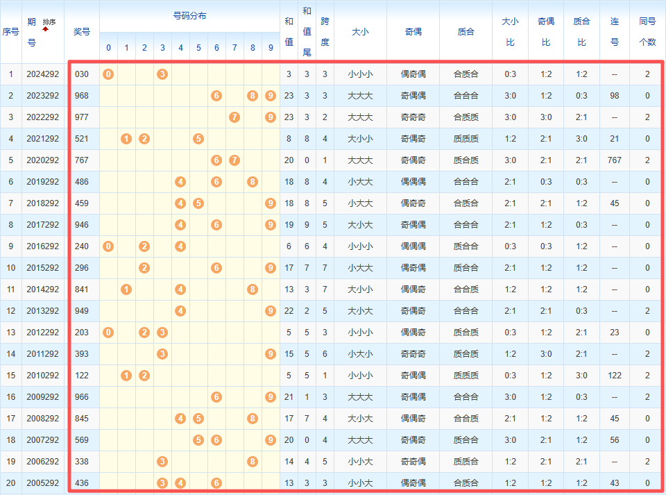 本文分别通过三个方面对本期排列三进行深度分析,这三个方面分别为:一:历史追随、二:往年同期数据、三:近期百十个遗漏值情况。