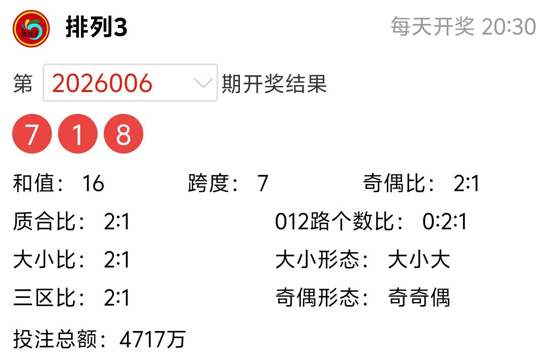 因此,排列3第2026007期个位5码推荐:2、3、4、5、6,精选三码参考:4、5、6