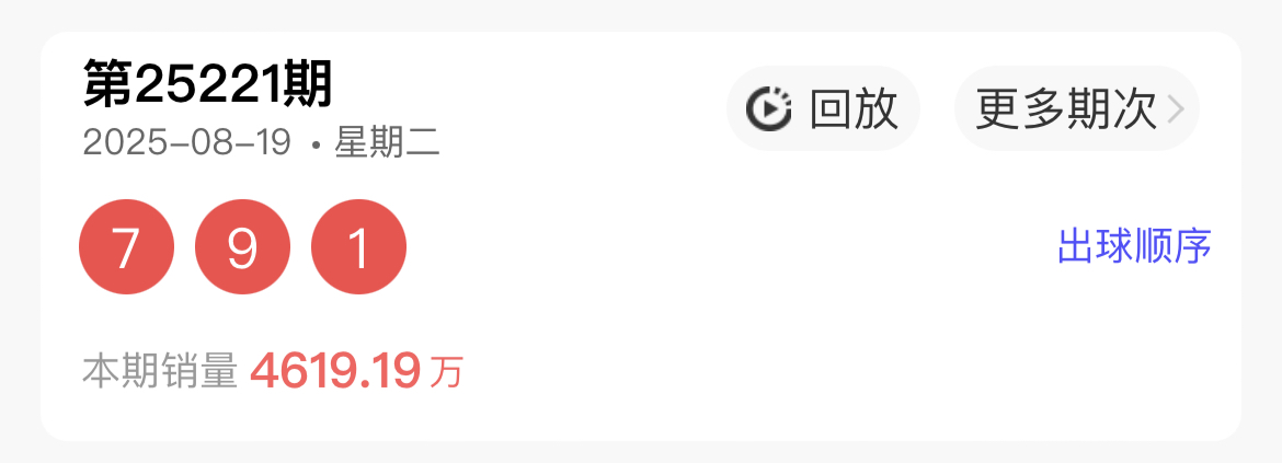第221期排列三开出的号码为791,和值为17,奇偶比为3比0,大小比为2比1,跨度为8,012路为百位1路,十位0路,个位1路,我们分析百位258,十位367,个位178,我们对了1个位置,这次我们要继续加油,本期我们分析推荐组选3码、直选以及6分运气的一组单挑直选