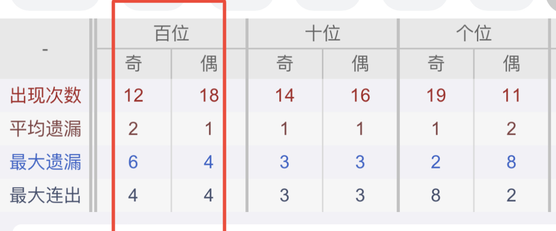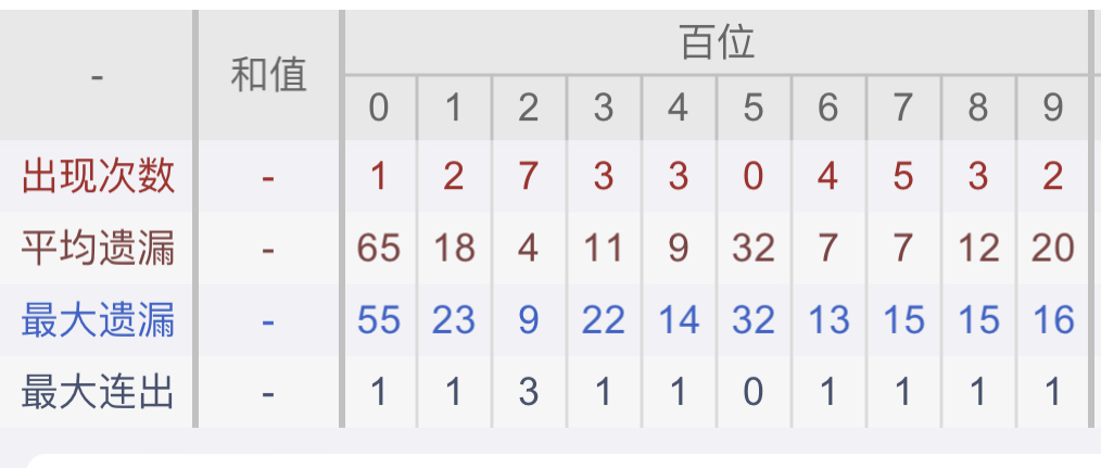 从近30期数据我们可以看出百位26是热码,这个冷热码数据我们结合之后的分析再利用它