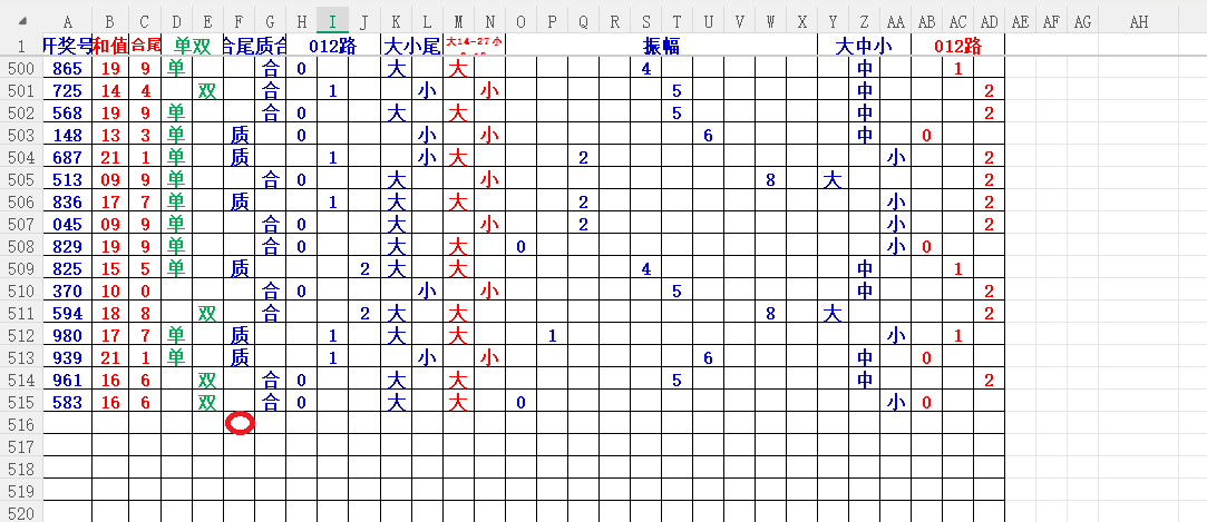 如上图2,大中小分析来看,中小数尾3456尾,可以考虑定3456尾。