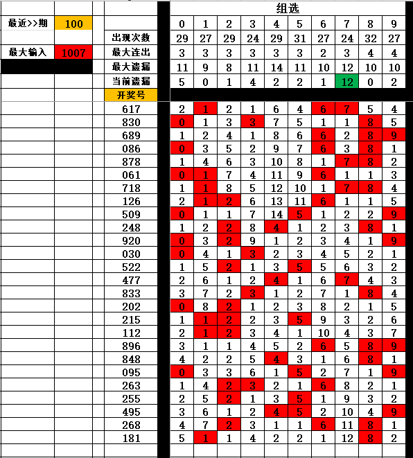 4:组选排序(近100期)开奖号组选各位0-9排序为8502416937 *首选*>>>85024 *次选*>>>16937