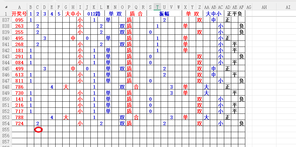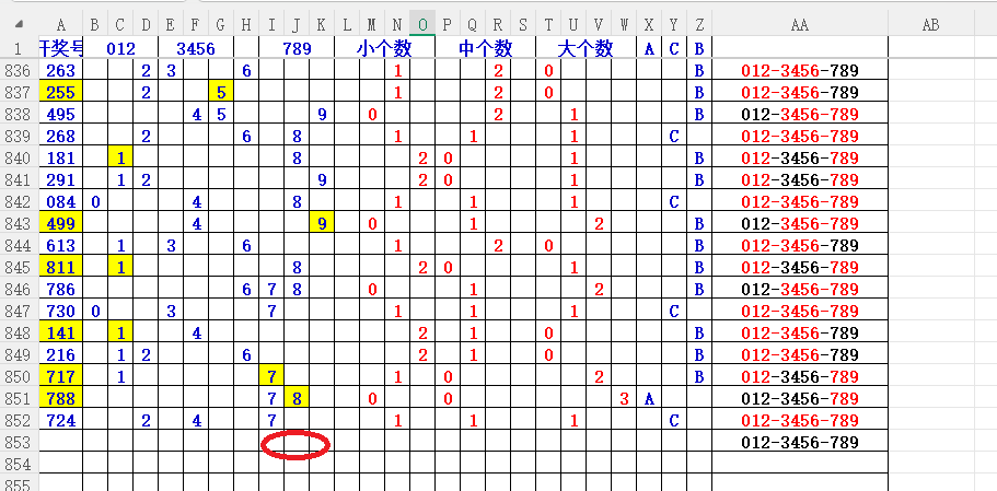 如上图2,012路分析,01路尾走比较好,关注34567尾;