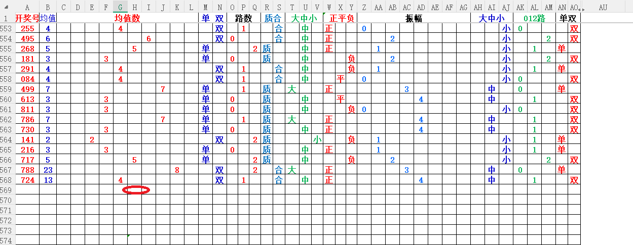 如上图1,大中小分析,均值小中大数比较好,也就是 3456 均值最好,重点:45。