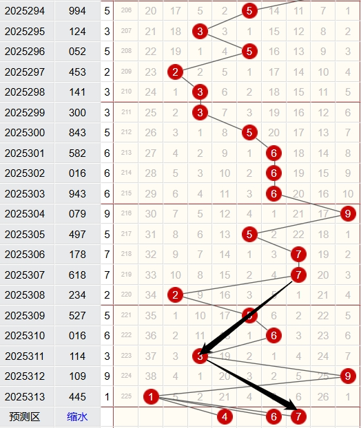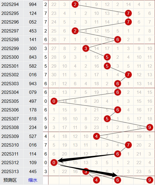 上期跨度为1,近5期跨度开出情况:第25308期开出2,属于偶数,2路号码,火属性;第25309期开出5,属于奇数,2路号码,土属性;第25310期开出6,属于偶数,0路号码,水属性;第25312期开出9,属于奇数,0路号码,金属性;第25313期开出1,属于奇数,1路号码,水属性;