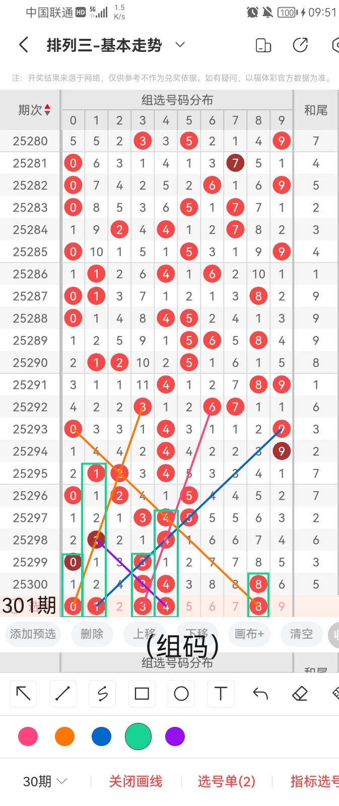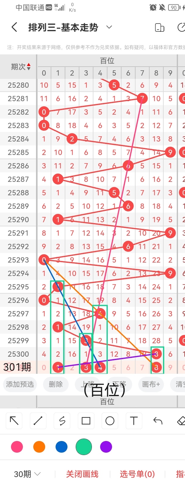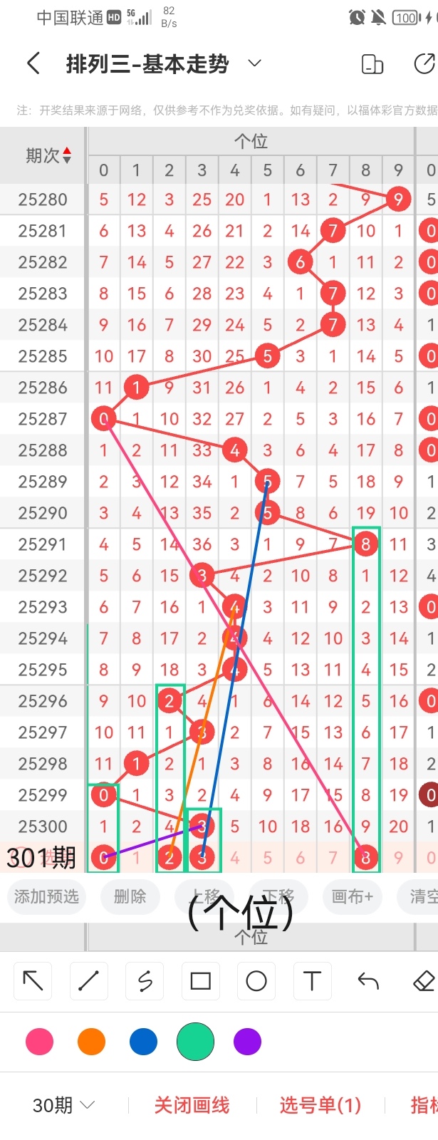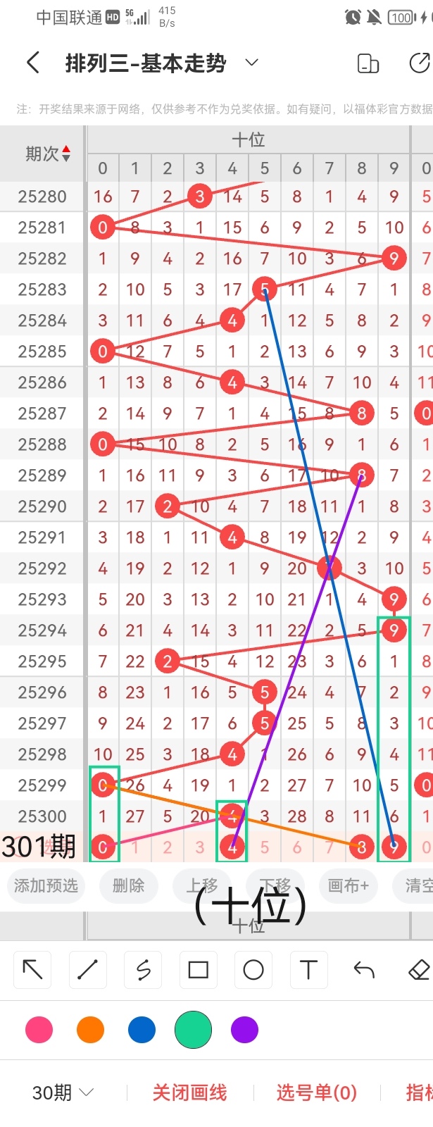 通过以上对上期的简单回顾,下面进入体彩排列三第2025301期(下面简称本期)的选号分析: