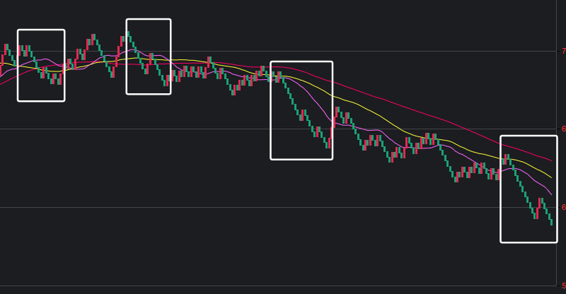 可以看到一些规律,在白框中,如果一致,那么接下来这些跨度也会出。
