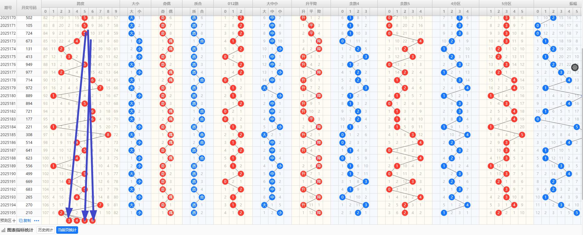 和值预判分析 从近期的和值走势来看,小数和值与大数和值呈现出交替出现的趋势。012路和值的比例也相对均衡。因此,预测本期可能开出小数、0路和奇数的和值。具体和值推荐10.13.14.15.16.等。其中,作为参考和值10.具有较高的可能性。